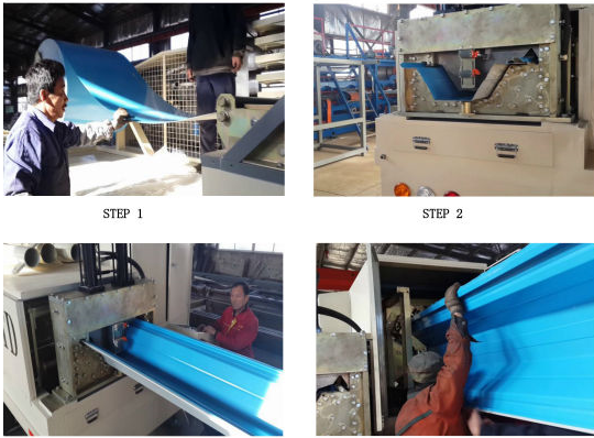 Long Span Curving Roof Building Machinery is formed by trailer type roller system device can be transported to the construction site to make continuous arch steel buildings. Various manufacturing plate device driven by electric hand stitched together operation stitching machine connect the panel together.