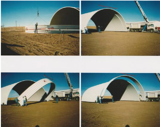 Steel And Metal No Beam Roof is formed by trailer type roller system device can be transported to the construction site to make continuous arch steel buildings. Various manufacturing plate device driven by electric hand stitched together operation stitching machine connect the panel together.